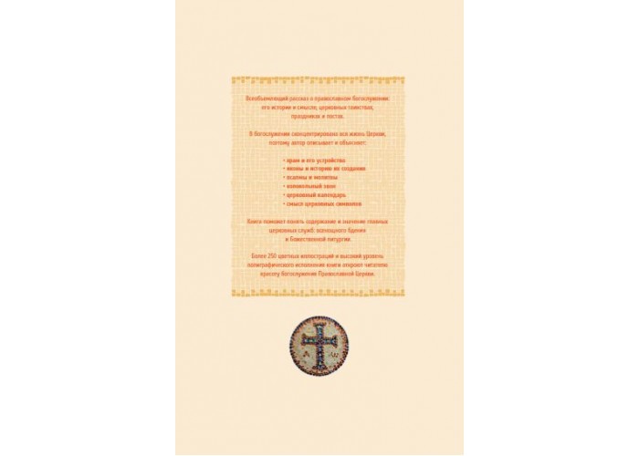 В доступной и увлекательной форме книга рассказывает о православном богослужении, его истории и смысле, церковных таинствах, праздниках и постах. В богослужении сконцентрирована вся жизнь Церкви, и потому автор говорит о храме, его истории и устройстве, иконах, известных иконописцах и творцах молитвословий, колокольном звоне и церковном календаре, смысле церковных символов и почитании святых.